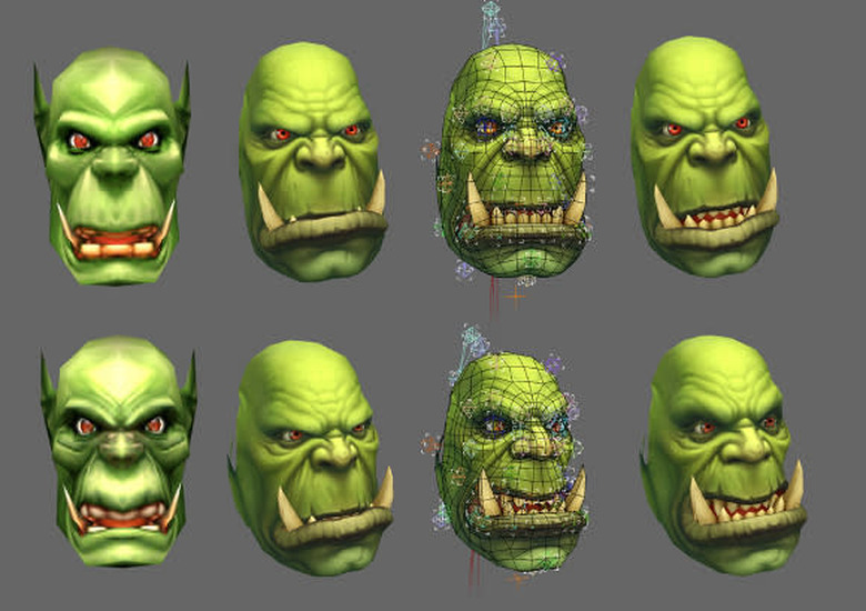 Our next big focus is doing justice to the facial options. With the original models and their simplistic geometry and low-resolution textures, a lot of facial expressions were simply painted on. Now that we've moved to higher-polygon models with lips, teeth, and fully articulated faces-not to mention higher-resolution textures-recreating those same facial options isn't as simple as painting them onto a flat surface. Previously, to get a sneer out of a model, you'd just paint a sneer on its face, and that was that. To do it correctly now-and make it look great-we have to fully pose a sneer, create a custom texture, and mesh that base pose with all of the existing emotes and animations.