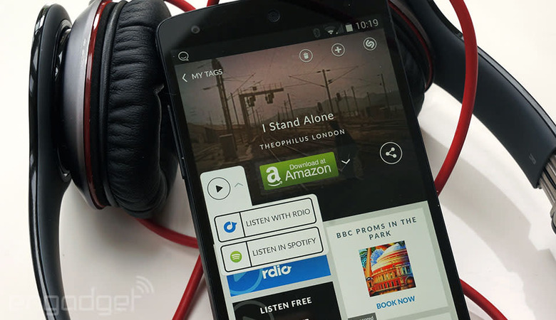After unexpectedly dropping the ability to listen to tagged tracks on Spotify in the UK and other countries, Shazam has re-added the service to its free app in most locales. The original issue came about thanks to a deal with Deezer, which replaced Spotify in in Germany, Mexico, the UK and Brazil (the premium paid app always worked). On top of adding Spotify back to the latest iOS and Android apps, Shazam is also reportedly testing Beats Music integration on iOS, giving users the ability to stream entire tagged tracks. The iOS Shazam app already works with iTunes for previews, and Shazam will soon power Siri tune recognition in iOS 8 — so Beats could be a tit-for-tat. As for Spotify, we're still not sure why it's back, but we wouldn't be surprised if metrics dropped or money was involved at some point. Meanwhile, we've reached out for more information.