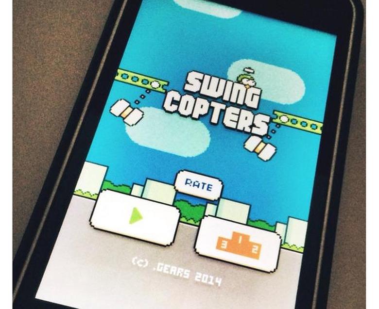 Flappy Bird creator Dong Nguyen confirmed that he has another game ready to launch on the iOS App Store. Similar to Flappy Bird, Swing Copters challenges the player to navigate a propeller-wearing character upwards through gates using taps to control the character's side-to-side movement.