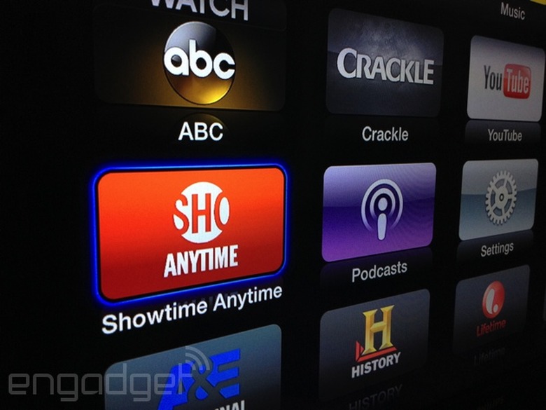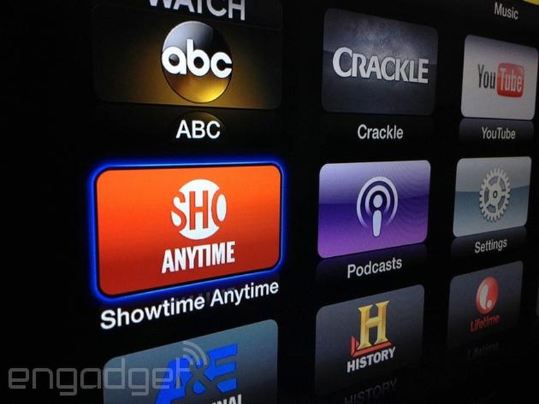 Showtime's Anytime streaming portal has already been available to Xbox 360, Roku and other capable gadgets with the proper cable subscription. Now, Apple TV owners can access the network's library of programming and the cable channel's live feed (East and West coast) via the compact set-top box. Customers on Time Warner Cable, Comcast Xfinity, Cox, DirecTV, AT&T U-Verse, Verizon FiOS, Optimum and Bright House Networks can input their credentials to start streaming the likes of Dexter, Homeland, and Masters of Sex — just to name a few. If you'll recall, Apple TV also received apps for NFL Now, ACC Sports and WWE Network (among others) over the last few months.
