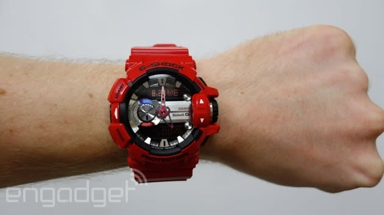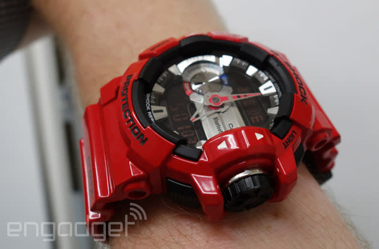Through the same Bluetooth connection, the new G-Shock can also sniff out your phone and ring it, when it's somehow hidden itself. (Last year's models apparently packed the same skill.) Unlike a lot of Casio's watches, there's no solar charging here, but the battery is rated for two years, which factors in using the mobile link feature for about two hours a day. Obviously, two years per battery change sounds much better than current smartwatch mileages — even if the skill set of the Casio model is a severely reduced one. The watch goes on sale in Japan first, priced at 23,000 yen (roughly $220), but it'll roll out globally after that — Casio expects to offer the model in the West later this year.