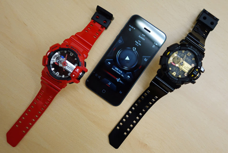 Casio continues to inch its G-Shock series toward something a little smarter, while holding onto a simple monochrome LCD display and that distinctly G-Shock styling. The "G'Mix" GBA-400 improves on the typical digital watch feature list through Bluetooth, a pair of dedicated apps (one for the watch part, one for the music-playing part) and your smartphone, whether it's iOS or Android. Oh and there's a giant dial control on the side and it's really satisfying to play with.