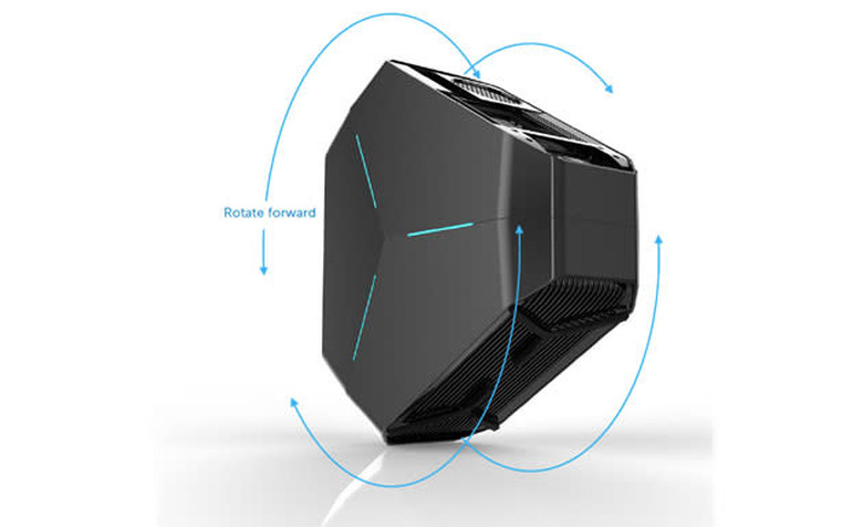 After a few years finding itself/getting a heavy-duty industrial makeover, Alienware's well-respected (and, importantly, customizable) desktop gaming PC has returned. The Area-51 isn't small, but it now has a new triangular... hexagonal... something-between-the-two design, intentionally hewn that way to maintain airflow and keep it cool, even when positioned against a wall. It's certainly come a long way since the tower desktop days of 2011. Given its size, two of the corners have handles to lug it around with — we hope you can bicep-curl 45 pounds though, because that's how much it weighs. It also looks nothing like Alienware's incoming Steam Machine. (Ironically, the new Area-51 chassis looks far more "Valve," in a lot of ways.)