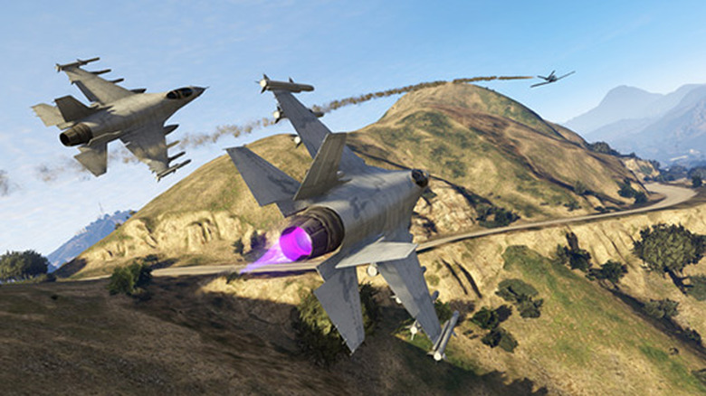Building on the recent, fan-favorite Flight School Update, Grand Theft Auto Online now features two new contact missions. The first, "Chop Chop," sees players hijacking helicopters from Merryweather Security before turning their airborne ordinance back on the the PMC's goons. In the second contact mission, "Effin' Lazers," players will fly the titular fighter jets on a mission to destroy similar jets owned by rival drug dealers. Obligatory Kenny Loggins anthem not included.