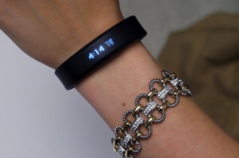 At first glance, the Vivosmart looks like the popular Nike FuelBand: A wide plastic bracelet (available in five colors), whose built-in OLED display stays hidden most of the time. When you want to swipe through your notifications, just double-tap the display to wake it up. Like any other fitness tracker, it counts your steps, calories burned, distance covered and the amount of time you spend sleeping each night. Also similar to other models, it has a vibration motor, which you can use to set wake-up alarms. It does food logging too, but only if you connect your existing MyFitnessPal account inside the Garmin Connect app, available for Android and iOS. As you might've guessed, the band is powered by a low-energy Bluetooth Smart radio, promising a fairly typical seven days of battery life.