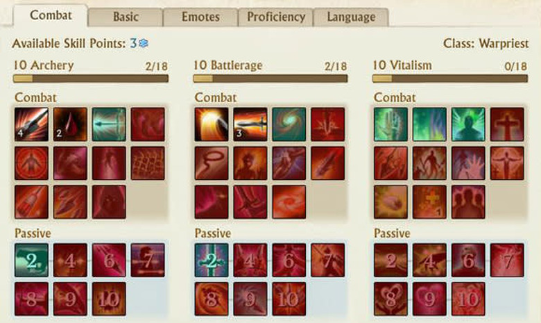 Once you've chosen your starter class, you'll be given a handful of skills and sent on your way. At level 5, you'll choose your second class. At level 10, you'll choose your third class, and the resulting trinity will give you some sort of cool class title (mine's Warpriest, for Archery, Battlerage, and Vitalism) as well as three corresponding skill trees. Unlike skills in most MMO skill tree systems, ArcheAge's skills needn't be taken in order. Some do have prerequisites, like a certain number of skill points spent in the current tree and so on and so forth, but you can skip around and take a passive armor bump from here, a knockback from over there, and oh how about a debuff from that tree and a heal from this one.