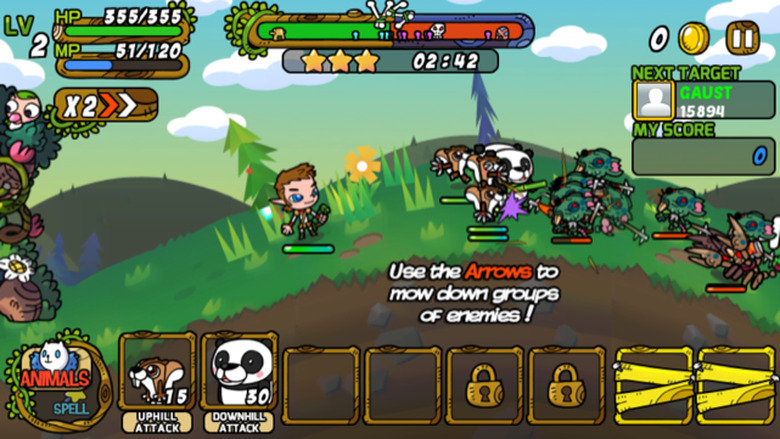 You've also got to manage your hero's HP and mana. Your "max mana" is used to summon animals, while the "mana recovery speed" lets you do so quickly. Virtual coins let you level up both of these stats, as well as others.