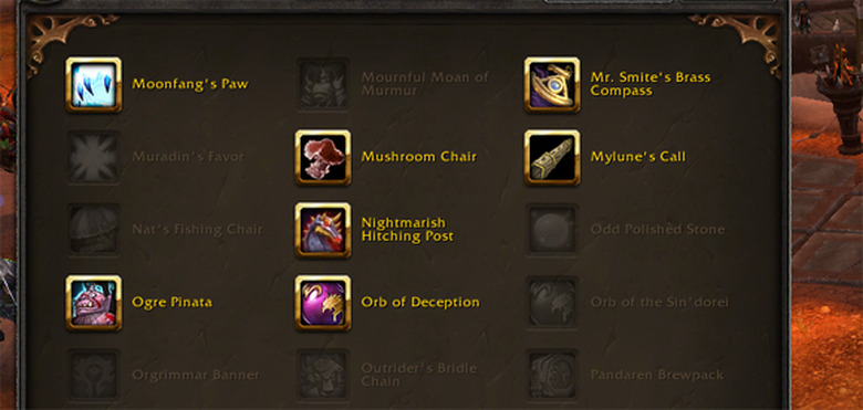 The same applies not just to collections, but to things like reputation bars — if they are not completely filled, I have a curious compulsion to fill them. If I have some kind of progress counter, I need to fill up in the same way. What makes this interesting, as Alternative Chat pointed out, is that it creates a different kind of content, one that maybe isn't for everyone, but it's viable all the same. The Toy Box was created in part as a space saver, to get all those delightful little items out of people's bags and allow Blizzard to freely add more of these kinds of items at their leisure. But hey — throw a few achievements in the mix, make a pretty UI interface for the thing, and suddenly you have another game of gotta-catch-them-all that will keep people busy for months, maybe even years.