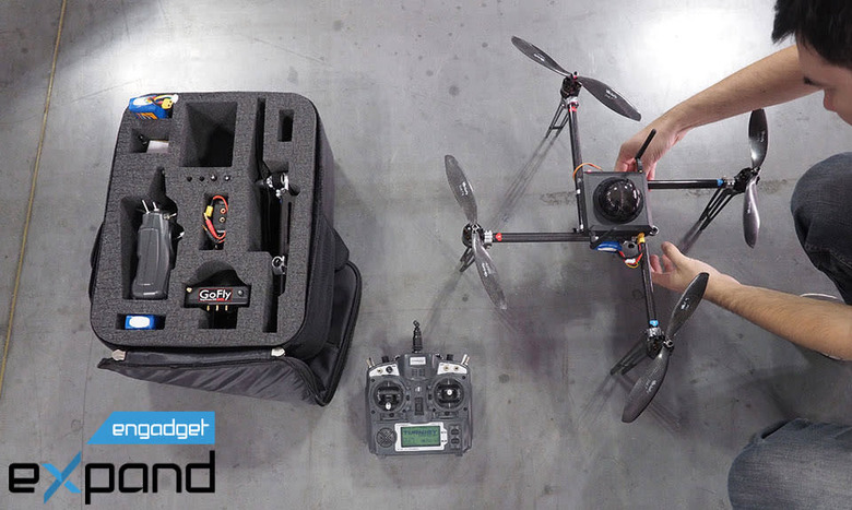 Yet after you're done, it can be broken down in about a minute for easy transport. The very polished-looking flyer is constructed from carbon fiber and looks like it can handle a fair amount of abuse. At the same time, Stamatovski said that there are multiple ways for wannabe filmmakers to control it, either using the remote or plotting waypoints on Google maps and downloading the data into the drone. If you're interested, the EasyDrone can be pre-ordered at $985 for a complete package capable of lifting a GoPro, or $1,185 for the heavy-lifting XL model. The team expects to complete Kickstarter deliveries by the New Year, with new orders shipping after that.