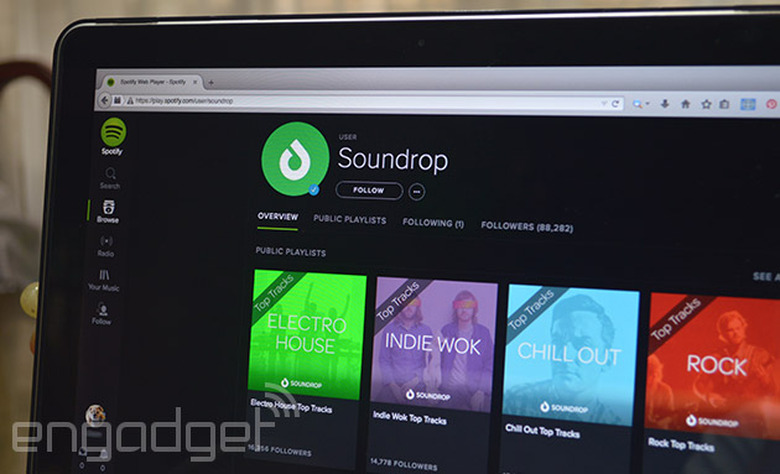 If you haven't fired up Spotify in a while, we have some big news for you: the service silently killed its App Finder platform for desktop in late October, and future versions of the client will remove the feature along with its library of apps. Because of that, Soundrop, a popular Spotify app, is shutting up shop on December 31st 2014. Soundrop provided the service's users a way to build communities with its listening rooms, way before Spotify launched its own share features. To use it, people need to log into a paid Spotify account and enter themed rooms to chat and listen to music with other fans of the same genre or artist.