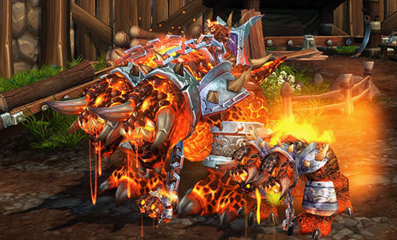 WoW's 10th anniversary celebration started today, and with it came what is now my favorite mount in the game. This Core Hound one of those mounts you have to see to believe. There's something incredibly cool about stomping around on one of these bad boys, especially with my matching hunter pet and battle pet in tow. I also snagged a ilvl 640 epic helm out of it. Everyone who kills Ragnaros will be guaranteed the helm and the mount. The rest of the bosses simply drop gold for everyone (around 25g each) which should hopefully pay for the repair bill you will rack up doing this right now.