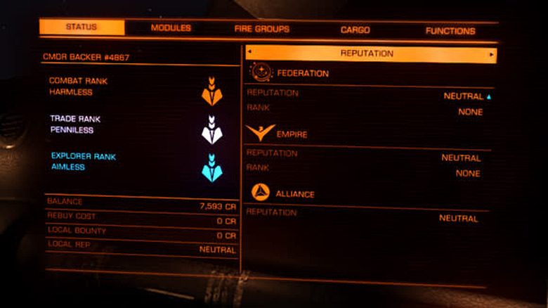 Perhaps most importantly from a structural standpoint, Elite's ranking system is now fully implemented. Every pilot in the Elite universe has a rank based on his or her activities, with the rank of "Elite" being bestowed on those who show the most aptitude and dedication. Fans of space exploration or auction house arbitrage will be happy to hear that rankings are not exclusively reserved for combat pilots. At the moment, my pilot's rankings are as follows: Combat Rank – Harmless, Trade Rank – Penniless, Explorer Rank – Aimless. Truly the heavens quake with fear when my pilot's name is spoken.