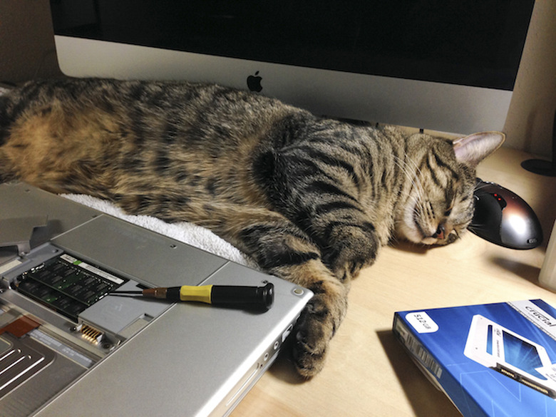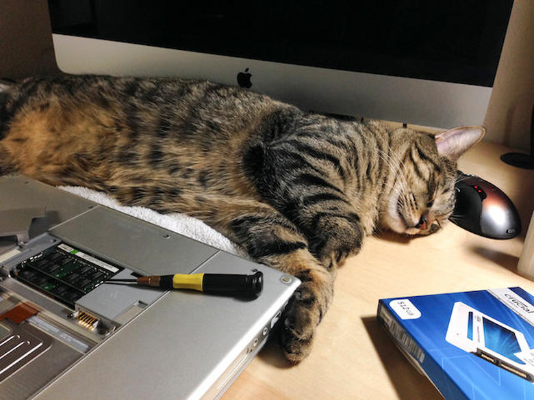 On Caturday, we've seen cats doing just about everything with a Mac, iPad or iPhone that you can imagine... but it took until today for us to see a feline helping out on a MacBook upgrade.