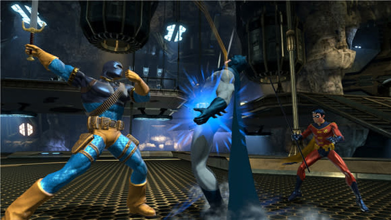 What about the actual play? While showing off Deathstroke (who happens to use a one-handed sword and has a stun grenade, a sniper shot, a leaping slash, stealth, a back flip, and more) Andersen explained that there are no actual modes in Legends PvE, just as there isn't in the PvP version. Instead, the role-less buffs from the main game (buffs that are applied if you are missing a certain role in group, like defense if there's no tank) are incorporated into the Legends play. "Players will have the tools they need to survive," Andersen pointed out, "but it will require a lot of tactics and group coordination in order to do it."