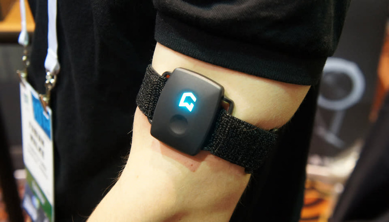So, picture the scene: You can use a cloth strap to wrap Gymwatch around either of your arms or legs and then fire up the app. Select the exercise that you're about to do, pick the object that you'll be holding (say, a dumbbell and a kettlebell) and an animation will tell you what to do. The wearable itself will then calculate your rate of motion and, should you overextend yourself, tell you that you've done something wrong. There's a pretty hefty battery tucked inside, and the company promises a 30-day battery life, which should cover your workouts for the month.