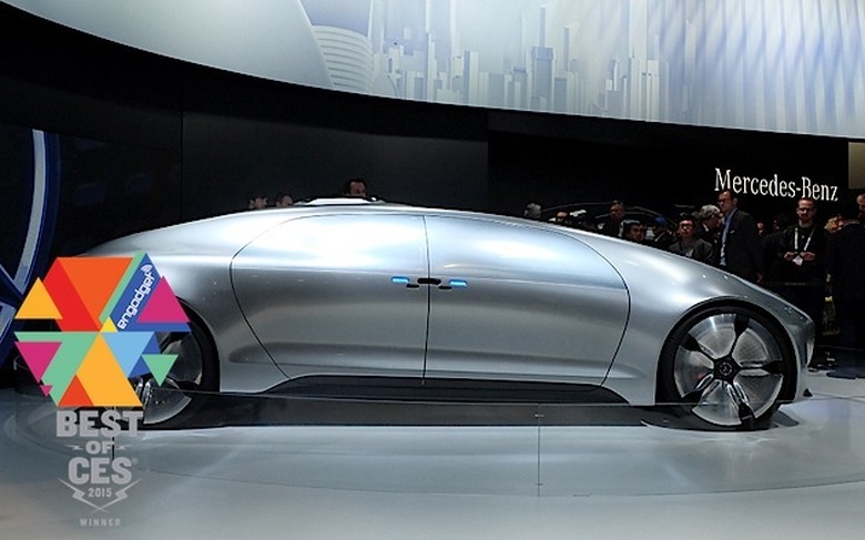 The Mercedes-Benz F 015 Luxury in Motion concept is as outrageous and ridiculous in form as a concept can be, but it's also something the company believes is a possibility by 2030. Its vision sees the car as a salon, a lounge you drift from destination to destination in like an extension of your home. The seating rotates and the passengers can face one another, like at home in the living room or on a train. The interior is a mash-up of a Jetsons and Flash Gordon episode with reflective surfaces, soft white and blue lighting, clean white seats and console and even wooden flooring. The six interior displays and door panels support both touch and gesture control to access all the car's connected features and even take control from the autonomous system. Of course, it's absurd to think this is even remotely realistic car for today's roads or even in the immediate future. Still, we have to applaud the audacity of Mercedes to just drop this concept on us here at CES; it's exactly what the show needs more of. Congratulations. — Sean Cooper, Associate Editor
