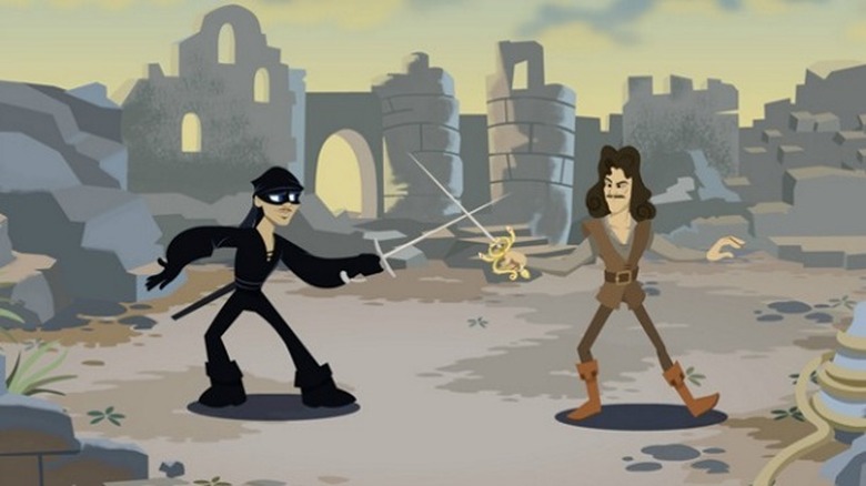 Using cartoon graphics and simple controls, the game recreates moments from the famous story, including climbing the Cliffs of Insanity, battling shrieking eels, and dueling with Inigo Montoya. We're not sure if the game forces you to start left-handed on that last one.