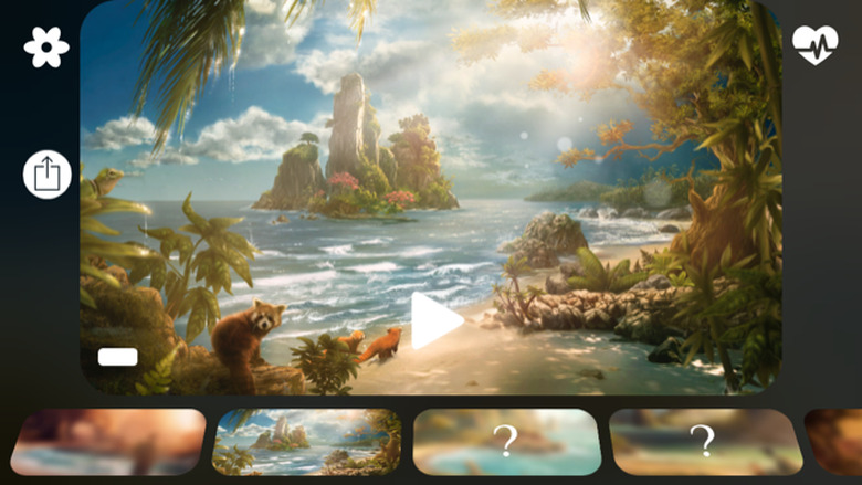 Here's what those controls offer. In the upper left there's a timer. Tap it to have the audio end after a prescribed amount of time. Tap the leaf icon in the upper right to read the story that accompanies each scene. It's a single narrative arc that adds a bit of fun to the experience. Not only fun, but "sunrays," which I'll explain later this post.
