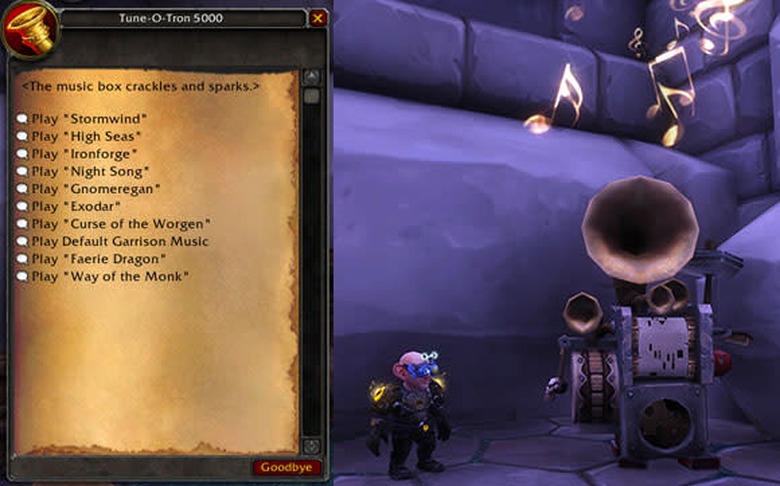 The jukebox is one of the biggest new garrison features coming in patch 6.1. It allows you to change the default music in your garrison, which is a welcome feature considering how much time I spend in there. Upon completing the simple quest to build your jukebox, you are given a selection of 7 faction-specific music tracks (known as Music Rolls) to get you started. It's as simple as clicking your jukebox and picking a new track as your default garrison music.
