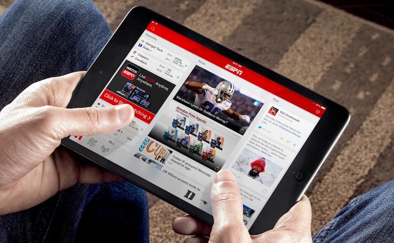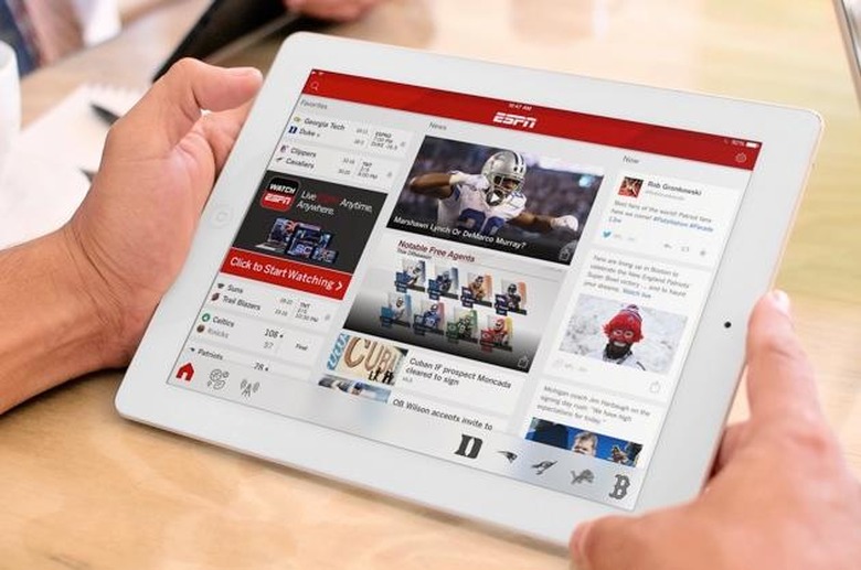 Up until now, ESPN has had two separate apps on iOS for news and scores, one designed for iPhone (SportsCenter) and another for iPad (ScoreCenter). Well, starting today, that's about to change. The Worldwide Leader in Sports announced that it is, finally, unifying its apps on Apple's platform, mashing them into a single application that'll be known simply as "ESPN." The newly consolidated app doesn't just bring a rebranding, however — it's also completely redesigned and developed to take advantage of iOS 8, which you'll need to have on your device in order to download it. As such, you can expect the ESPN app to support the bigger, higher-res screens of the iPhone 6 and 6 Plus, a feature that's been long overdue.