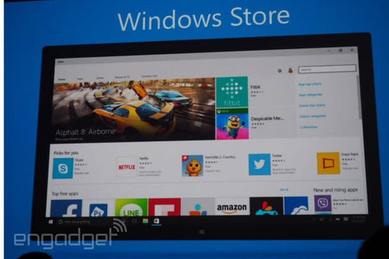 One of the reasons some people didn't like Windows 8 was that it seemed to include two versions of Windows: Live Tiles and the desktop, with touch-friendly apps kept far away from traditional x86 programs. With Windows 10, Microsoft seems to be trying hard to make the user experience feel less jarring, and now, it's taking things a step further with the Windows Store. Once home exclusively to touch-friendly, "Metro-style" apps, it will now house a mix of Win32 and .NET apps as well, along with server-hosted web applications. The result is that users will now have a one-stop shop for all manner of Windows downloads. From a developer standpoint, meanwhile, all of these apps will be able to take advantage of the same Windows Store platform — that means updates are delivered the same way, and developers can also enable in-app purchases, as they would in any other Windows Store download.