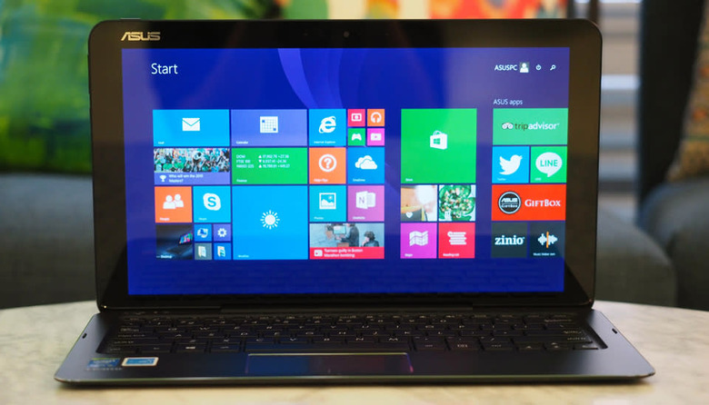 But back to the battery life. The runtime here is especially skimpy, even compared to similarly equipped Core M laptops. The 32Wh, 4,120mAh cell lasted just five hours and 51 minutes in Engadget's video rundown test. By comparison, lighter-weight machines like the Yoga 3 Pro, the new MacBook and the Dell XPS 13 all lasted somewhere between seven and a half and eight hours under the same testing conditions. The XPS 13, in particular, can probably do even better if you get it with a lower-res 1080p display. In a note to reviewers, an ASUS rep suggested opening the included ASUS "Splendid" display utility and making sure it was set to the "normal" screen profile for maximum battery life. Even then, though, the machine wasn't able to crack six hours on a charge. Not good.