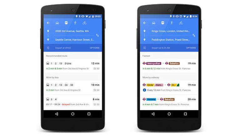 Public transportation info has been in Google Maps for quite some time, but today the feature is seeing some handy improvements. First, when you select a transit option in the app, you're served a a list of options that will not only show you the next bus or train, but how long you'll be playing Candy Crush if you miss it alongside some alternative options. The details are updated in real time and you can expect to leverage the tool in more places, too. Google added partners to the list in six new locales: UK, Netherlands, Budapest, Chicago, San Francisco and Seattle. While public transit info was available for those spots, you can now access real-time info as well. The folks in Mountain View say today's news brings schedules for over 2.5 million stations, stops, terminals and more worldwide. Heck, you'll even be able to see when your train leaves on your wrist.