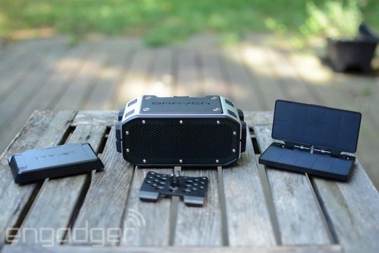 If you're willing to spend $200, though, you can get the speaker bundled with either the solar panel or the battery pack. While the stacking plate allows you to put a few of the speakers together for a bigger sound, I'd rather have the assurance of up to 40 hours of battery life — especially on a camping trip with no electricity. You can also charge the extra battery pack separately if you'd prefer. On the other hand, solar recharging would come in handy on a trip that won't include access to electrical outlets. Braven says you'll be able to play the speaker "forever" if you keep the volume parked at a medium level in full sun. Of course, that metal frame might get a little warm if you leave it sitting out all day and you might run into issues after dark as well.