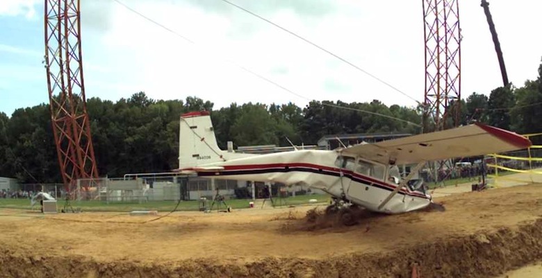 The crash test, which involves dropping a 1974 Cessna 172 tail-down from 100 feet onto soil, is intended to test emergency locator transmitters (ELTs) used by search and rescue teams. The ELTs installed in commercial planes and general aviation need to work even in the extreme conditions of an accident, which can include excessive vibrations, fire and impact. ELTs that survive a crash can send signals to orbiting satellites, which relay the data to search and rescue teams on the ground.