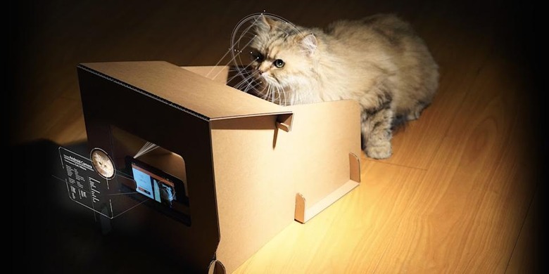 Last year, Zillians launched a high-tech cat feeder called Bistro that'll monitor how much food and water your little feline is eating thanks to a smart built-in facial recognition camera. Since then, the company has renamed the product to the CatFi Pro, which is pretty much the same exact thing, except with a different name. But what if you don't have the $199 or so to drop on the CatFi Pro and you still want to keep tabs on kitty's diet? Well, Zillians has just come out with a less-functional but still-workable cardboard alternative called simply CatFi Box, which they showed off at TechCrunch Disrupt in San Francisco this week. Yep, all you need is a spare Android phone, a piece of cardboard and an Exacto knife to make your very own high-tech cardboard cat feeder. Think of it as Google Cardboard but for your cat. And you know, without that whole VR thing.