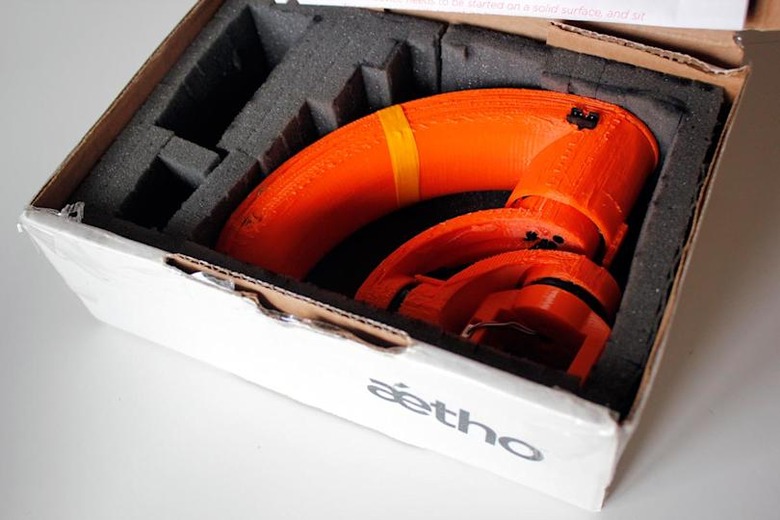 Aetho's goal with the Aeon is to make a stabilizer that looks and functions as slick as the video it produces. I spent some time with a 3D-printed prototype, and I have to say, it looks and feels very promising. Firstly, the design is unlike most competing products (which usually resemble a frame on the end of a pole). Aeon, on the other hand, looks like the offspring of a traditional steadicam that got friendly with the steering controls of a supercar. The curved handle feels much more comfortable to hold for extended periods, and it also places the camera directly level with your hand. With other gimbals, the GoPro is usually above your hand, which makes framing less predictable. With Aeon, you just point your knuckles where you want to film, and the GoPro follows. A small, but significant detail.