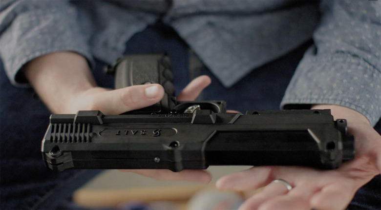 Salt's Indiegogo campaign says it "was designed around the belief that a gun does not have to take a life to protect a life." See, it might look like conventional handgun, but its bullets aren't made of lead. Instead, they're pellets that contain a proprietary mixture of powdered chemicals, including oleoresin capsicum: a ghost pepper extract used for pepper sprays. Since the pellets explode when they collide with a solid object, you don't even have to hit your target. Its creators said the powder mixture, which "exceeds the potency of those used by" Homeland Security and the military, causes temporary blindness, makes the lungs constrict and stings the human skin.