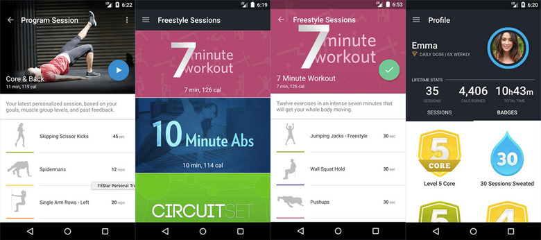 FitStar tracks your weekly progress, including each workout's details, calories burned and total time. You can also link it to calorie trackers like MyFitnessPal and sync it with a Fitbit account to track your overall progress more closely. You will have to pony up $7.99 per month if you want access to unlimited personalized sessions, but you can always take advantage of the two customized routines per week and the handful of Freestyle exercises (e.g. "10-Minute Abs") the service offers for free.