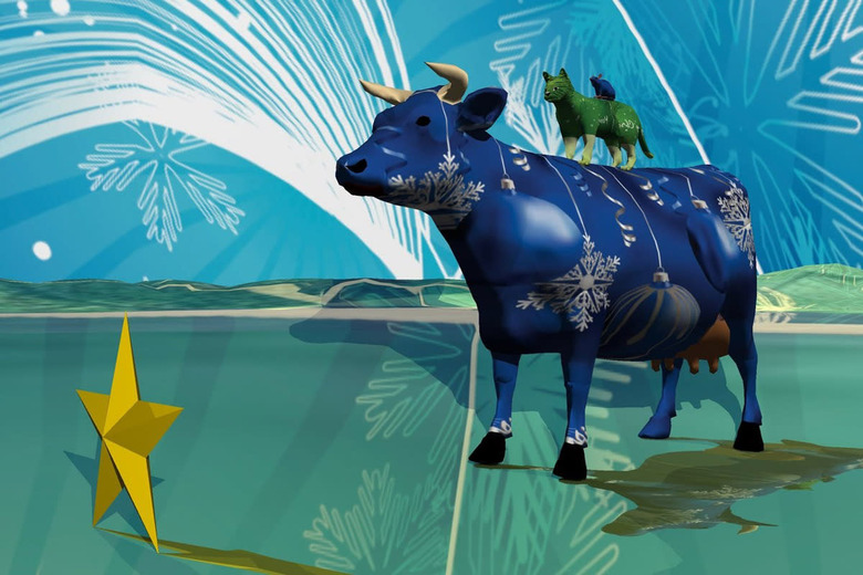 It's easy to imagine a piece of art in your head, but making it real is another matter if you're not an artist. Wouldn't it be nice if you could simply describe what you wanted? WordsEye is trying just that. Its beta web app lets you describe a scene using natural-language text, and uses statistical parsing to translate that into a 3D image. You can name objects and their qualities using terms that are as fuzzy or exacting as you like, including relative concepts like position. It's easy to use, although the results can be more than a little surreal — just look at the pictured rat on a cat on a Christmas cow if you need proof.