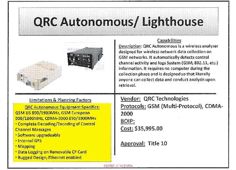 The technology found in the catalog is used to spoof cell networks like AT&T, Sprint, T-Mobile and others. In other words, a machine creates a fake cell tower that phones connect too and the device tracks the data that is sent between the phone and device. The information can be used to locate an individual, eavesdrop on calls and text messages, and even extract media from the phone.
