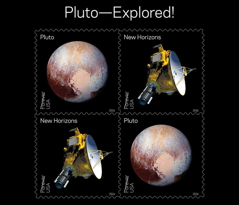 The US Postal Service now has an answer to its 1991 "Not Yet Explored" Pluto stamp, the same one the New Horizons team affixed to their probe before it started its journey to the dwarf planet. These new stamps for 2016 feature an artist render of the history-making spacecraft, as well as the most popular image it took of Pluto. The composite photo, which clearly shows Pluto's heart-shaped region, was captured by the probe's Long Range Reconnaissance Imager (LORRI) during its closest approach.