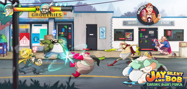 Coming just fifteen years after the book was (initially) closed on the View Askewniverse, Kevin Smith is (finally) making a Jay and Silent Bob video game. Jay and Silent Bob: Chronic Blunt Punch! is a 2.5D multiplayer side-scrolling tag-team brawler in the style of Castle Crashers that's being produced by Interabang Entertainment. In it, Jay and his hereto life mate Silent Bob are on a mission to find their long-lost customers, trapped inside a new shopping mall in a neighboring town.