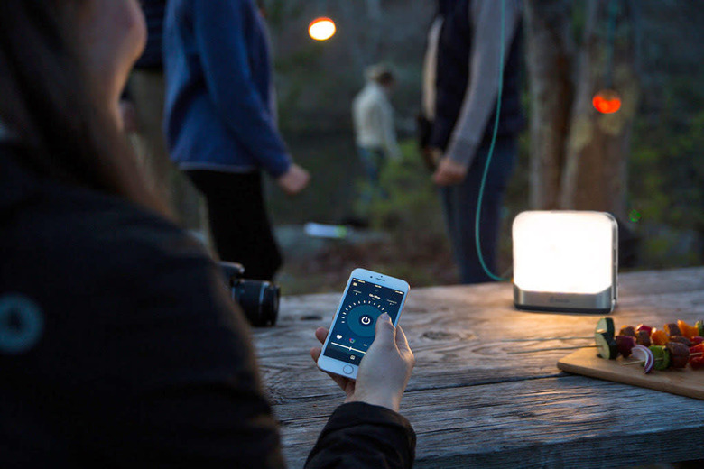 But as a lighting solution and battery pack, the lantern also packs a few smart tricks that set it apart: with the Bluetooth LE-connected smartphone app, campers can set the mood with the lantern's color controls and lighting temperature, or check the check battery status and power analytics to see how much juice is left before everything goes dark. The killer feature though? Proximity activation for those times when you're stumbling out of your tent in the dark, looking for a place to pee.