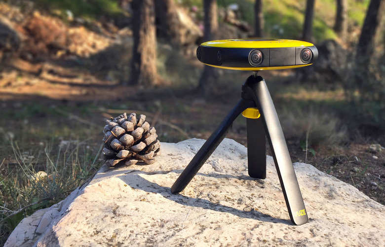 This isn't the cheapest or most portable VR camera you can get. Ricoh, Samsung and others are already making smaller 360-degree cameras that cost under $400, and Nikon's upcoming KeyMission 360 may be similarly affordable, but all these options only shoot in 2D. Vuze's system packs eight cameras versus two to four on most of these competitors, which is what allows to record in 3D (or 2D at higher resolution). Another advantage of the extra optics, is it doesn't have to rely on fisheye lenses (and thus compensate for serious distortion) to create its wrap-around 4K picture. As such, this might be the best way to capture VR video on an enthusiast's budget. You're theoretically getting the quality of the pro option without the bank-busting cost.