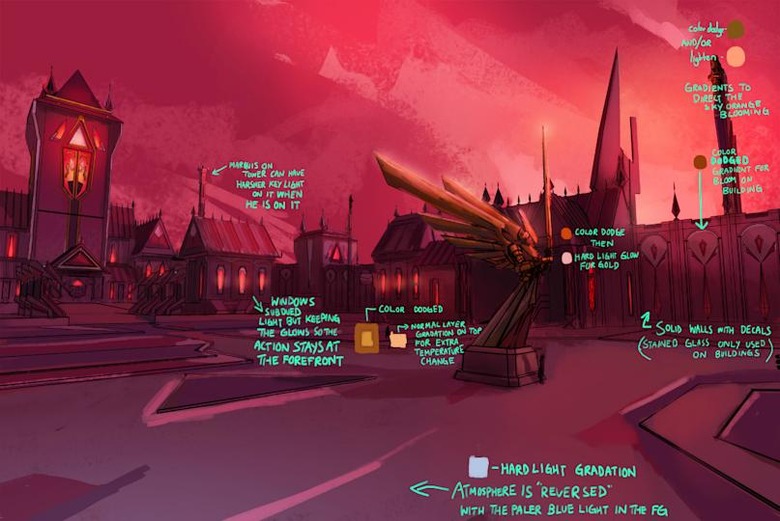 That's what Kester wanted with the Battleborn introduction video: something raw yet intriguing to longtime FPS fans. Something different. The AAA industry is largely focused on creating realistic 3D animations, Kester notes, and he hopes the cinematic is part of video games' growth as an artistic medium. He'd love to play an entire game that looks like the prologue, for instance.