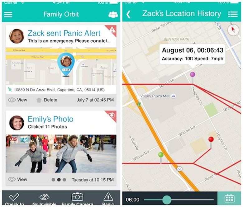 A perfect name. You have a home base in the center, and family members are orbiting around that home base in many different directions.Family Orbit (iOS and Android) lets everyone keep track of everyone else in real time. Just select the family member and geo-locate them, day or night. But it is much more than a location-monitoring tool. Other features include: