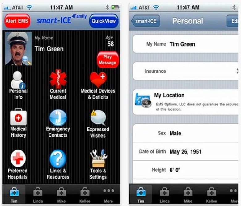 - If any family member has a medical condition, the app will contain critical information for ES and hospital personnel