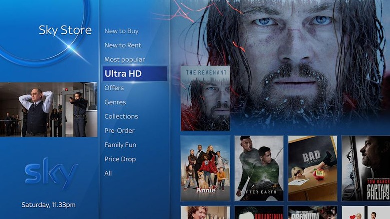 Sky might have pipped Virgin Media to the post, but BT began showing sport in glorious 4K a year ago. If BT swung the first punch, though, then Sky is bouncing off the ropes with a heavy counter. In addition to showing 124 live Premier League games and from 2017, every Formula 1 race in Ultra HD, there will be over 70 4K movies available on Sky Cinema from the outset, including new blockbusters such as The Revenant and The Martian.