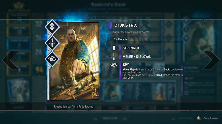 At E3 2016 The Witcher 3: Wild Hunt developer CD Projekt Red announced that it's working on a standalone Gwent title for Xbox One, PC, and PlayStation 4. It was supposed to enter closed beta for the former two platforms in September, but players will now have to wait until October 25th to get their hands on the virtual card game. In a statement, the studio said it still needs a little more time to work on Gwent before it feels comfortable letting the public play.