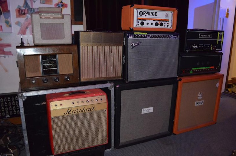 It was a long process that made songwriting into a sort of assembly line procedure. "We might need to record 50 guitar drones in E minor, but because of the kind of band we are, it wasn't just hitting 'render' 50 times in some software. It was us in a room with lots of mics pointing at amps (below) turned up as loud as they could go, and wearing ear defenders eight hours a day."
