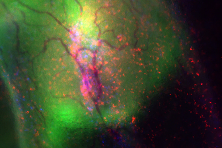 To date, biologists have typically had to study the progress of a virus through indirect means, such as studying the antibodies — actually tracking the viruses themselves has been difficult. However, researchers say they've found a way to follow the progress of a virus in real time. By using multiphoton microscopy in tandem with a laser and fluorescence, the team monitored influenza virus in a mouse's trachea (where the transluency made imaging possible) through the infection and immune system response.