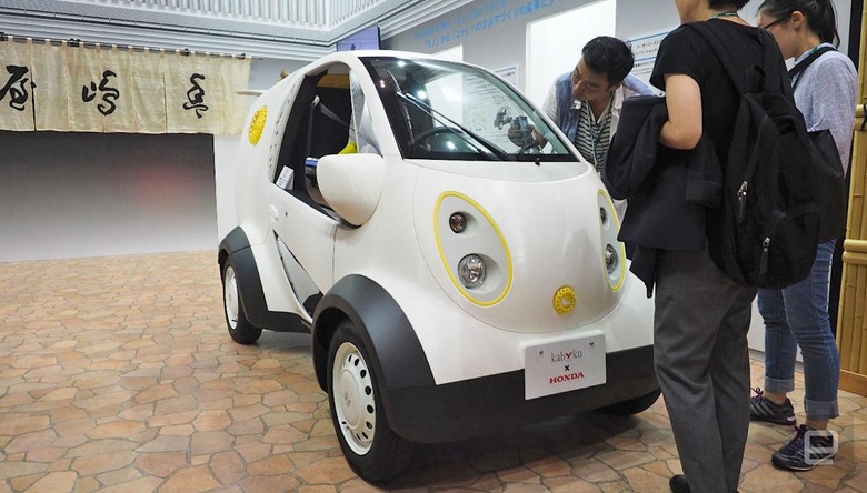 The car mostly has that familiarly, rough 3D-printed surface to it, but despite being the early first step in Honda's efforts to offer a heavily customizable electric vehicle, today's prototype could very much move. A handful of journalists and businessmen got to sit inside and drive it very briefly around a corner in a faux-Japanese village. 3D-printing entire car bodies could lead to reduced design times and cheaper costs. But that's if it becomes a bigger thing. For now, it's a promising platform that's still in development.