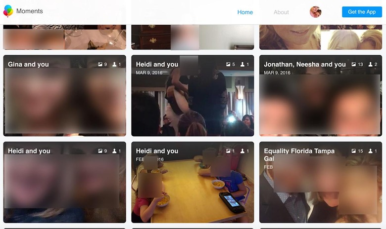 Facebook gives you basic access to Moments photos on the web
