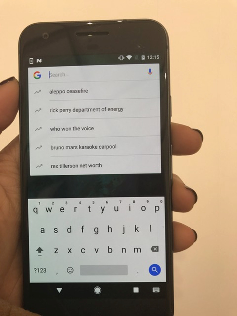 Google Assistant is accessible through the Search feature. I found this to be far more usable than Siri and enjoyed the fact that it provides possible search keys and trends. Allo is also a very functional app, so having the Assistant/Allo available to the user's fingertips is an optimal user experience.