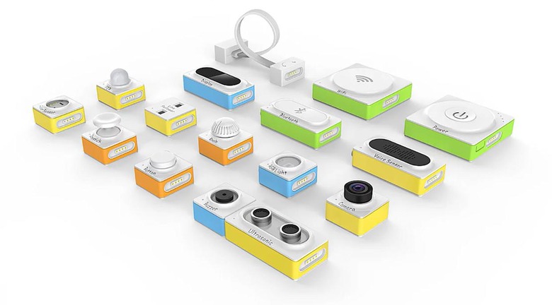 There are four kits available: Explorer, Light Wizard, Science Lab and All-in-One. Each is equipped with basic blocks like a light sensor and adjustment knob, with the different kits featuring specialized blocks geared toward a child's interests, like cold cathode, WiFi and camera blocks. Others include a voice sensor, Bluetooth, ultrasonic and display module.